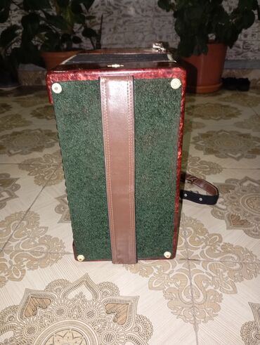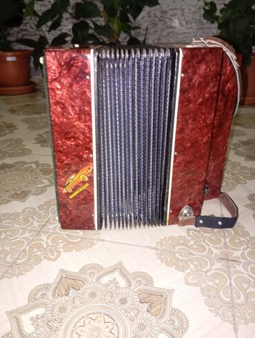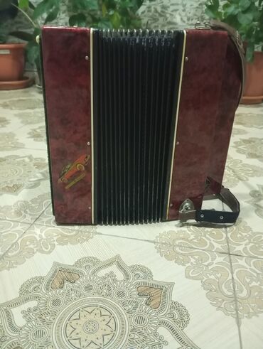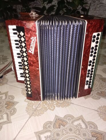 Akkordeon – klavişli və bas düyməli - Tip: Klavişli akkordeon (piano klaviaturası) və sağ tərəfdə bas/akord düymələri - Korpus: Qəhvəyi-mərmər fakturalı örtük, metal yan qapaqlar, klassik keçə kör...