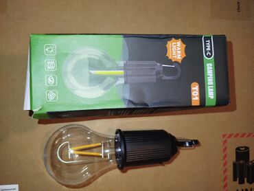 - Dizayn: Köhnə “lampochka” formasında şəffaf kolba, üst hissədə möhkəm karabin – çadırda, ağacda, balkon və qarajda asmaq üçün rahatdır