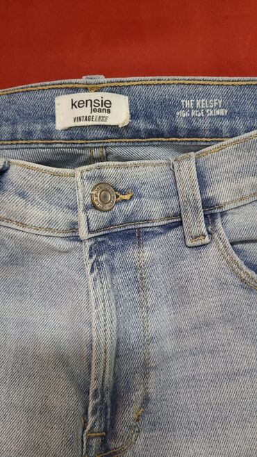 Kensie The Kelsey model qadın cins şalvarı. Açıq mavi rəngdə olan bu cins şalvar yüksək belli və dar kəsimlidir. Vintage Luxe kolleksiyasından olan bu cins şalvarın hər iki ayağında yırtıq detallar var. Gündəlik istifadə üçün uyğundur.