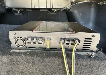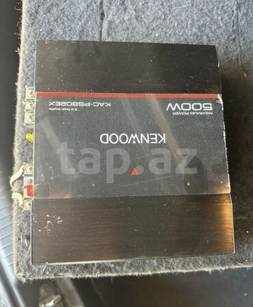 - Gücləndirici (amplifier): Kenwood KAC-PS802EX, 2-kanallı, maksimum 500W. Körpüləmə (bridged) rejimini dəstəkləyir, subwoofer üçün ideal. Arxa paneldə: