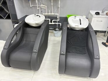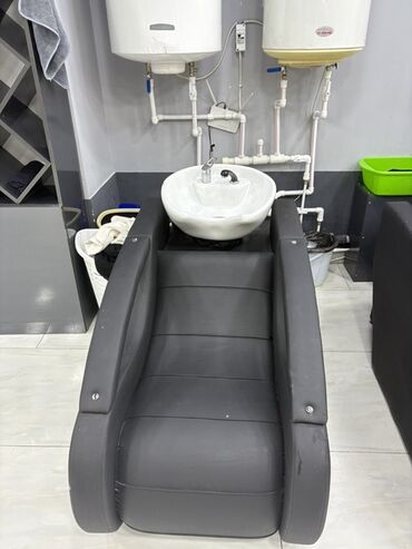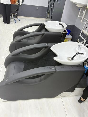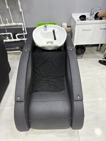 Salon üçün saç yuma kreslosu və keramik lavabodan ibarət peşəkar yuma stansiyası.