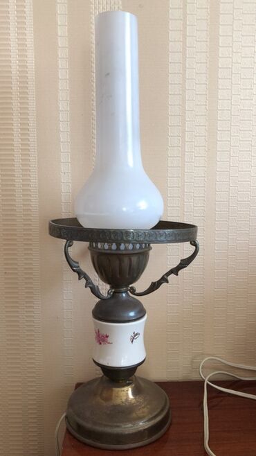 Komplekt: lampa korpusu, şüşə abajur, elektrik şnuru və düymə. Lampanın patron növü: standart vintləmə patronu (E27 tipliyə bənzər; lampası ayrıca seçilir).