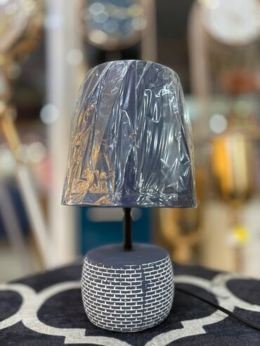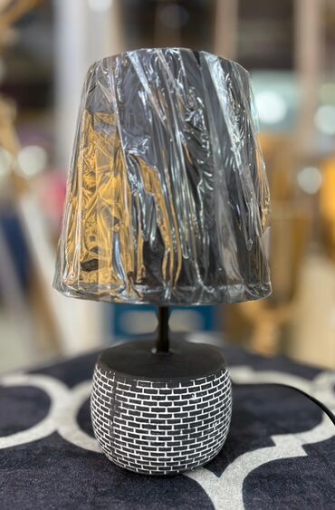 - Materiallar: Keramika baza, metal dayaqlıq, tekstil abajur.