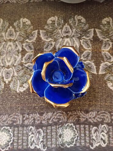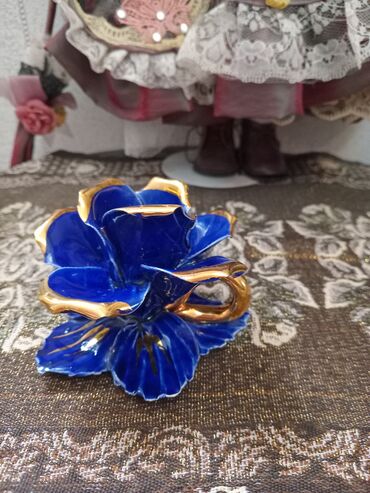 Kobalt-mavi rəngdə, qızılı detallarla işlənmiş keramika dekor fiquru – gül formalı.