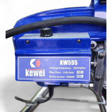 Kewei KW595 boya püskürtmə aparatı - Tip: Airless (havasız) boya püskürdücü - Model: KW595 - Gərginlik/tezlik: 220V, 50Hz - Mühərrik gücü: 3500W - Maksimal axın: 4.0 L/dəq - Korpus: metal dayaqlı,...