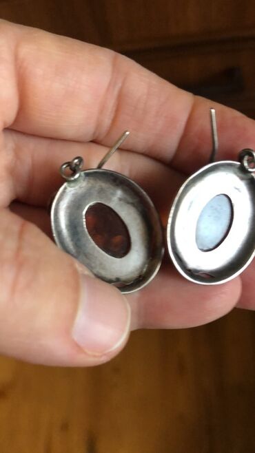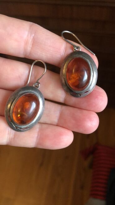 - Material: metal korpus (gümüş tonlarda), ön tərəfdə oval kaboxon kəsimli kəhrəba effekti verən daşlar