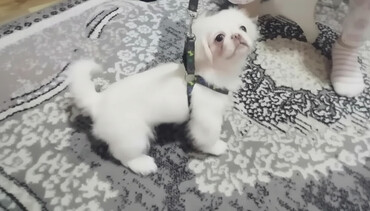 PeyvəndliAğ rəngli, kiçik ölçülü ev iti – yumuşaq və sıx tüklü, qısa pəncəli, yastı sifətli, iri qəhvəyi gözlü. Şəkillərdə nizamlı qoşulan gövdə kəməri və kəmərə uyğun zəncir ilə verilir. Ev şəraitinə uyğun, sakit xasiyyətli, qucaq sevməyi xoşlayan, gəzintilər üçün rahat olaraq yüngül səmtdə dartmayan kəmər sistemi ilə idarə olunur. Qısa pəncələr və kompakt bədən quruluşu sayəsində mənzil həyatı üçün komfortludur. Ağ tükə görə mütəmadi daraqla daranması, göz və burun ətrafının nəm salfetlə təmizlənməsi tövsiyə olunur. Uşaqlarla və ailə mühitində ünsiyyətcil, oynaq xarakterlidir. Gündəlik qısa gəzinti və keyfiyyətli quru yemlə qidalanma uyğundur. Şəkillərdə gördüyünüz kəmər/zəncir də üstündədir.