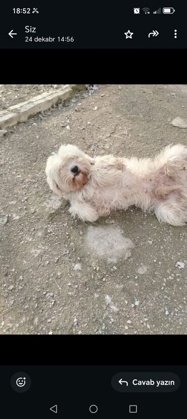 Salam Pudel satılır 4aylıqdır.Maltese tipli kiçik ölçülü it - Rəng: tam ağ, uzun və yumşaq tüklü - Burun: qara, kiçik - Gözlər: tünd, iri və ifadəli - Ölçü: mini/oyuncaq ölçülü, yüngül çəkili - Xa...50 AZN