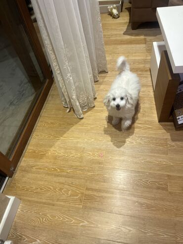 Ağ tüklü balaca it balası - Rəng: tam ağ, yumşaq və sıx xəzdərisi - Burun: qara, kiçik və yığcam - Gözlər: tünd, ifadəli - Qulaqlar: kiçik, yanlara doğru - Bədən quruluşu: kompakt, qısa patilər, y...