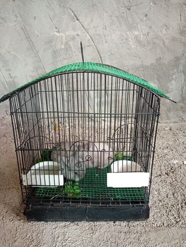 Quş qəfəsi və yuvalama qutusu dəsti - Material: ağ rəngli metal barmaqlıqlar, möhkəm plastik altlıq - Forma: qövsvari tavanlı, ön qapılı konstruksiya - Ölçü təxmini: orta həcm (dalğıc vanna tipli ...