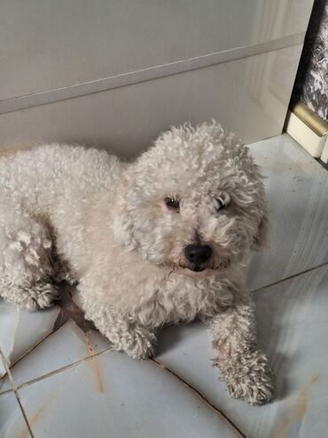 Ağ, qıvrım tüklü, kiçik ölçülü it balası. - Cins tipi: oyuncaq ölçülü, ev şəraitinə uyğun, allergenə nisbətən az saç tökən quruluş - Xüsusiyyətlər: çox mehriban, uşaqlarla və mənzil şəraitində raha...