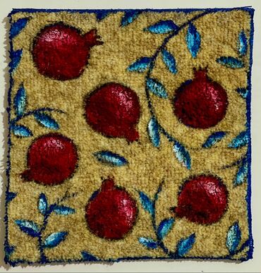 Üzərində akrik boyalarla narlar təsvir olunub. Boya qalıcıd. Ölçü 18,5x18,5 sm
