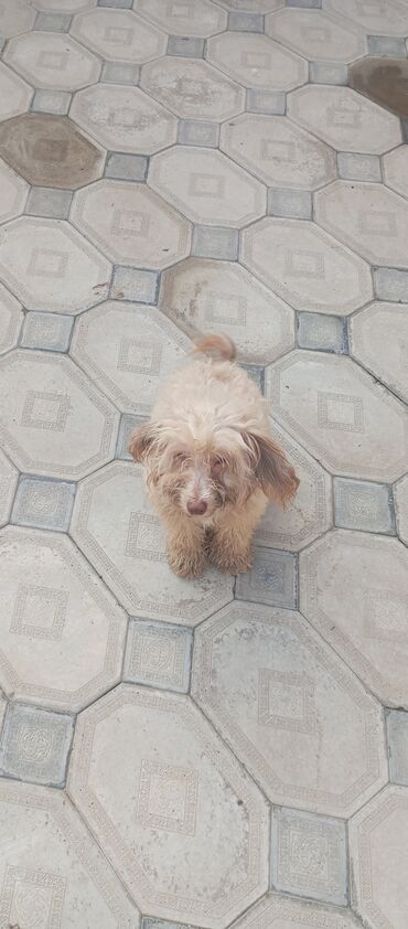 Miniatür, tüklü oyuncaq görkəmli balaca it - Cins: kiçik ölçülü oyuncaq tipli (pudel qarışığına bənzər) - Rəng: açıq krem/qızılı - Qulaqlar: sallanan, yumşaq tüklü - Burnu: qara, kiçik - Gözlər: ir...Razılaşma yolu ilə