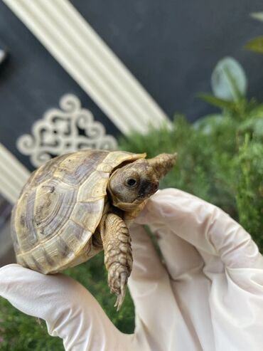 Şəkillərdəki tısbağa əlcəkli əllə göstərilib; kompakt ölçüsü və sakit xasiyyəti ilə mənzil üçün uyğun bir sürünəndir.