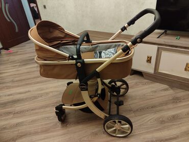 Uşaq arabası – beşik tipli, bej rəngli - Çərçivə: yüngül və möhkəm metal konstruksiya, təkərləri böyük və amortizatorlu, qabaq təkərlər dönəndir, arxa təkərlər daha iri və stabil gediş təmin edir....