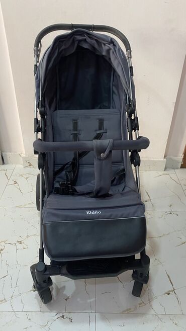 Marka loqosu: Kidilo. Şəhər və park istifadəsinə uyğun, gündəlik ehtiyacları qarşılayan funksional uşaq arabası.