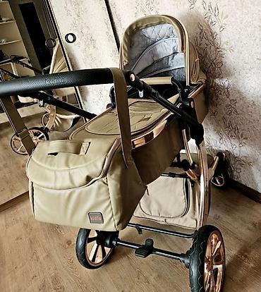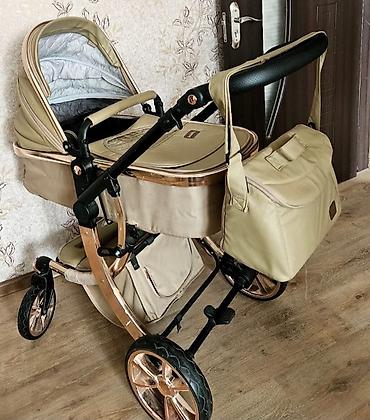 Uşaq arabası – Kidilo markası, bej/qızılı tonlarda şık dizayn.