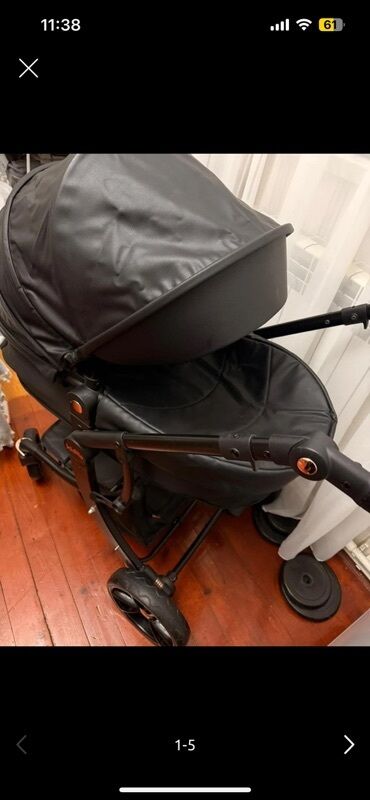 Kidilo körpə arabası – qara rəngdə, beşik tipli üst modul ilə.