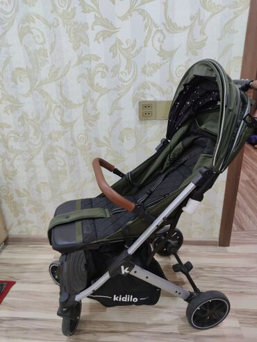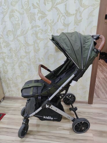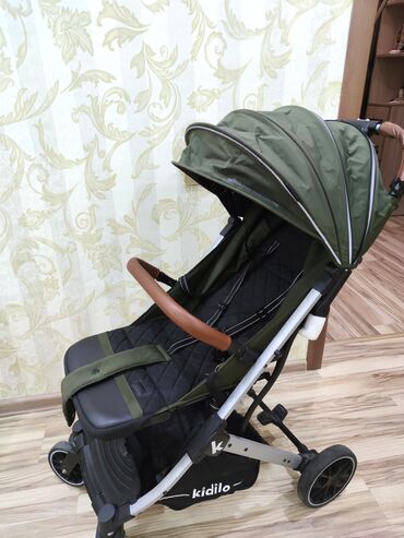 Uşaq arabası – Kidilo brendi Xüsusiyyətlər: - Rəng: zeytun-yaşıl/boz tonlarda kumaş, qara şassi - Təkərlər: dörd təkərli, ön təkərlər fırlanan, amortizasiya ilə rahat sürüş - Tutaq yeri: yuxarıda ...
