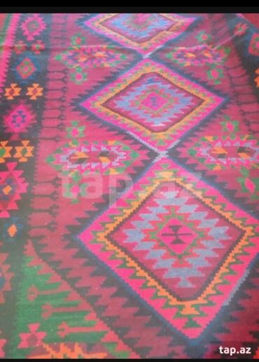2/ 4 olcude qedimi bir esrden cox yaşı olan elde toxunma yun kilim hec istifade olunmayıb yukde qalib defekti yoxdu.
