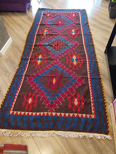 Kilim xalça - Naxış: Şərq üslubunda həndəsi motivlər, mərkəzdə romb