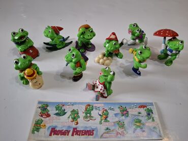Satışda olanlar şəkillərdə görüldüyü kimidir: dinozavrlar, qurbağalar, pinqinqlər və begemotlardan ibarət çoxsaylı fiqurlar və onların kataloqları. Kolleksiyaçı və retro oyuncaqları sevənlər üçün nadir və cazibədar seriyalar.