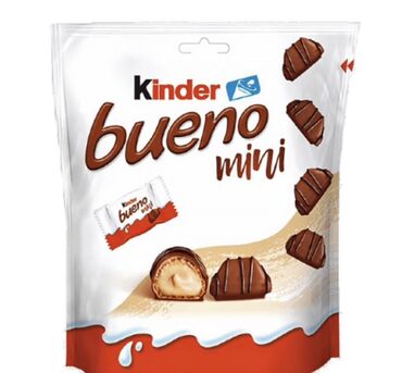 - Kinder Bueno Mini – fındıq-kremli, xırtıldayan vafli içində miniatür şokolad konfetlər, paketli.