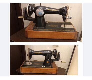 - Mexaniki tikiş maşını (retro tip). Dəmir gövdə, taxta baza, əl fırladan qol, ip gərginliyi və tikiş uzunluğu tənzimləyiciləri, metal şpulek və iynə mexanizmi. Evdə əsas tikiş işləri və dekorativ tikmələr üçün praktik quruluş.