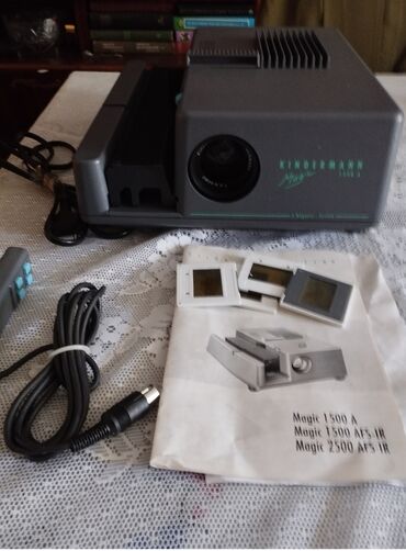 Digər brend- Kindermann Magic 1500 A slayd proyektoru. Manual kitabçası (Magic 1500 A / 1500 AFS-IR / 2500 AFS-IR üçün), uzaqdan idarəetmə kabeli və slayd kasetləri ilə. 35 mm slaydların göstərilməsi üçün optik obyektivli qurğu, avtomatik slayd ötürmə mexanizmi, fokus tənzimləməsi. Ev təqdimatları və arxiv slaydlara baxış üçün uyğundur.