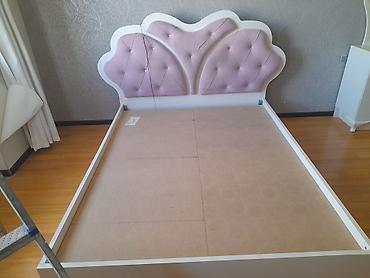 - Çarpayı çərçivəsi: geniş ölçülü, bərk karkas, tam taxta əsaslı. Başlıq dalğavari formadadır, pudra-çəhrayı rəngli, düyməli kapitone işləməli yumşaq üzlük və dekorativ düymələrlə.