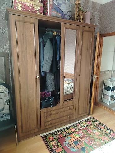 - 3 qapılı şkaf: orta hissədə güzgü, asılqan bölməsi, aşağıda 2 dərin çekmece