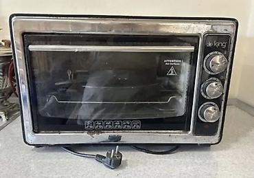 King markalı mini elektrik sobası - Masaüstü tip, şüşə qapılı, paslanmayan polad çərçivə - 3 idarəetmə düyməsi: temperatur, rejim seçimi və taymer - Rejimlər piktogramlarla göstərilib (bişirmə, qr...