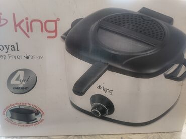 Məhsulun üzərində “King” brendi, “Royal” seriyası və “Deep Fryer DF-19” modeli qeyd olunub. Evdə kartof fri, toyuq parçaları, tərəvəz və digər qızartmalar üçün uyğun dizayn.