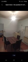 - Mətbəx/böyük otaq hissəsində masa və 4 stul, soyuducu, elektrik çaydanı