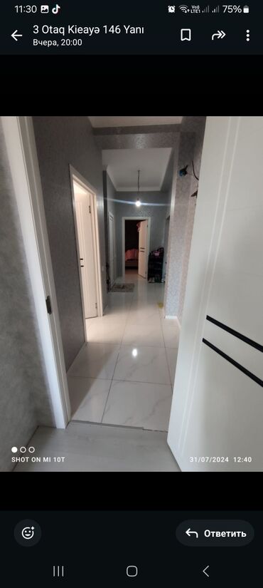 Əmircan qəs. 3 otaqlı, 90 kv. m, Yeni təmirli