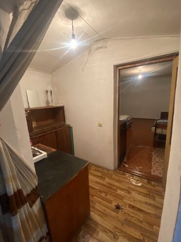 - Döşəmə örtükləri: otaqda linoleum, giriş və mətbəx hissəsində taxta/daş kombinasiya