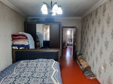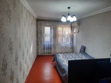Kirayə üçün sadə, mebelli mənzil. - Otaqlar: 2 ayrıca otaq və keçidli zal. Bir otaqda iki tək çarpayı, yastıq və döşək; digərində divan. - Mebel: yemək masası və stullar, metal çarpayılar, vitrina...