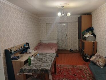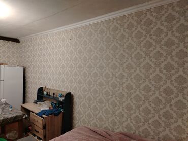 - Geniş, düzbucaqlı otaq, klassik naxışlı divar kağızları və ağ tavan karnizi