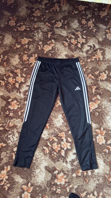 Adidas idman şalvarı - Rəng: qara - Dizayn: hər iki yan boyunca klassik iki ağ zolaq; ön hissədə kiçik Adidas loqosu - Kəsim: düz balaq, rahat oturuş - Bel hissəsi: elastik - Material: hamar, elas...