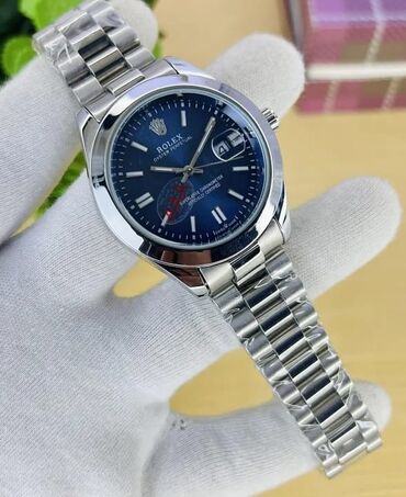 Rolex qol saatı – orijinal qutu və beynəlxalq zəmanət kartı ilə. Qiymət:150 manat Xüsusiyyətlər: - Korpus və qolbaq: metal (paslanmayan polad görünüşlü), klassik Rolex qatlanan kilid. - Siferblat: ...