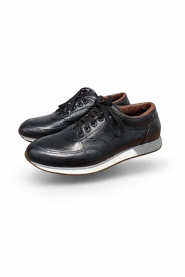 Qara rəngdə dəri kişi ayaqqabıları. Rahat və yüngül dizayn gündəlik istifadə üçün idealdır. Şnurla bağlanır və hər hansı bir geyim tərzinə uyğunlaşır.