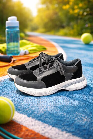 Kişi ayaqqabısı – qara rəng, klassik-idman üslubunda - Bağlı model, aşağı kəsim - Yumşaq üst material (dəri görünüşlü), hamar tekstura - Rahat içlik və yastıqlı dil hissəsi - Elastik, sürüşməyə dav...
