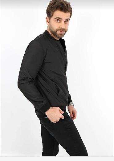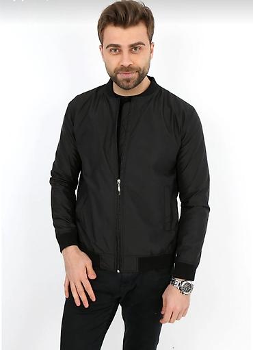 Kişi gödəkçəsi – qara rəng - Stil: bomber/moto üslubunda, dik yaxalı - Ön hissə: iki ədəd döş cib (fermuarlı), iki ədəd yan cib (fermuarlı) - Daxili: boz rəngli astar - Bağlanma: ön hissədə tam fer...