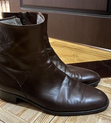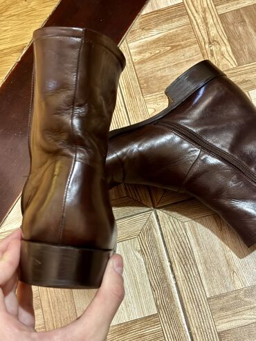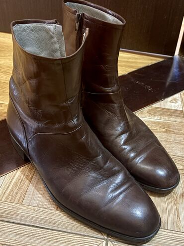 Qara dəri kişi botları - Model: Klassik kvadrat burunlu, qısa boğaz (ankle boot) - Material: Natural dəri üstlük, iç hissə açıq rəngli dəri/derman - Rəng: Qara - Bağlanma: Yan tərəfdə metal sürgül...