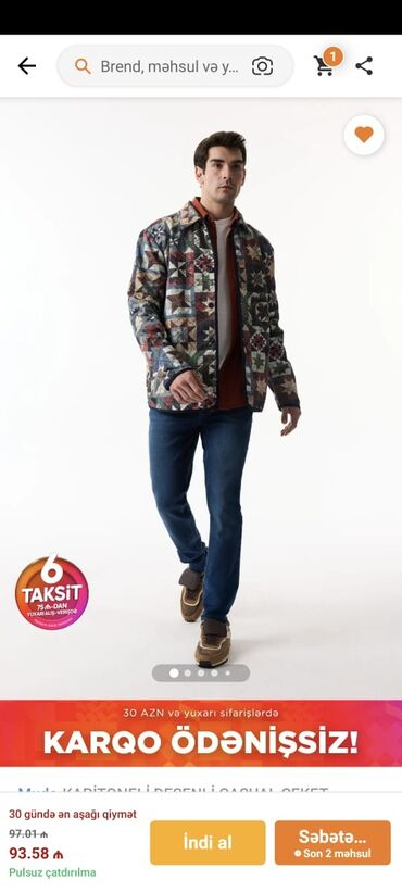 PayızHeç geyinilməyib, Ölçü uyğun gəlmir deyə satılır. Mudo Fıbra kişi casual gödəkçə