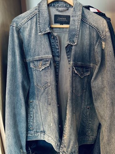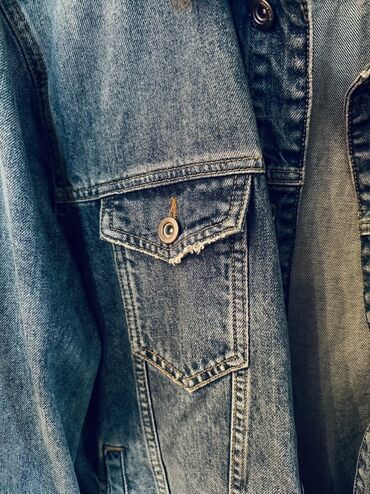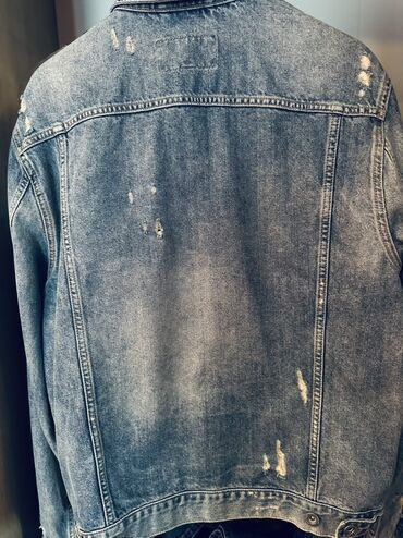 Denim cins gödəkcə - Stil: Uzun kəsimli, klassik cins gödəkcə - Rəng: Tünd mavi/boz yuyulmuş effektli, köhnəldilmiş görünüş (fade və ağartma detalları) - Material: 100% cins parça (denim) - Bağlan...