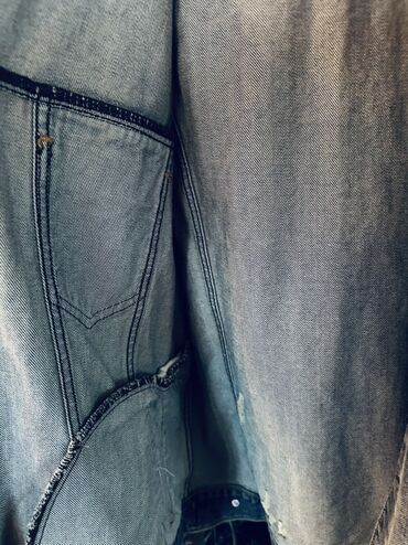 Walys Jeans markalı cins jaket – XL ölçü. - Material: qalın denim (tünd mavi, açıq yuma effekti ilə) - Dizayn: klassik yaxalı, ön hissədə knopkalarla bağlama - Kəsim: yüngül oversize siluet, rahat...