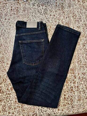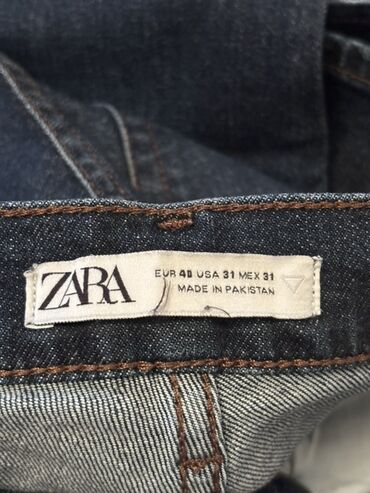 ZARA Denim Collection kişi/cinsiyyətsiz klassik mavi cins şalvar - Material: sıx denim (pambıq qarışımı) - Rəng: orta tünd mavi, yüngül yuma effektli - Kəsim: düz paça, rahat oturuş - Bel: kəmərke...