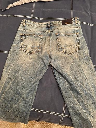 TRE JNS markalı açıq mavi rəngli cins şalvar - Kəsim: düz/klassik paça - Rəng: açıq mavi (light wash) - Ön hissə: fermuarlı və metal düyməli bağlanma - Ciblər: 5 ciblidir (2 ön, 1 kiçik pul cibciy...
