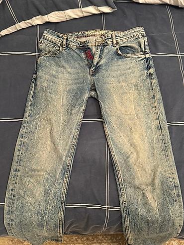 Geyinilməyib. SMOG markalı kişi cins şalvarı - Ölçü: 34/34 (EU/US/CA) - Rəng: klassik mavi, yüngül solğun effekt və distress detallar - Kəsim: düz balaq, orta bel - Material: 99% pambıq, 1% elasta...